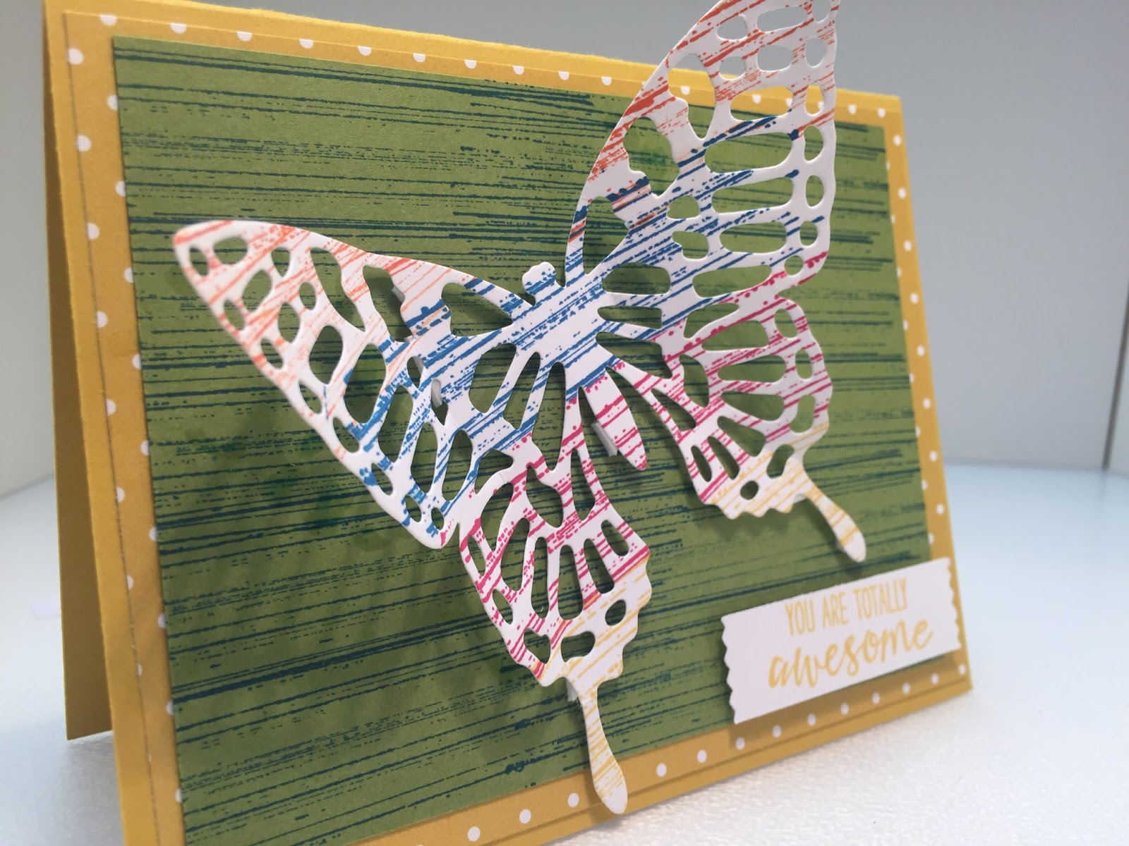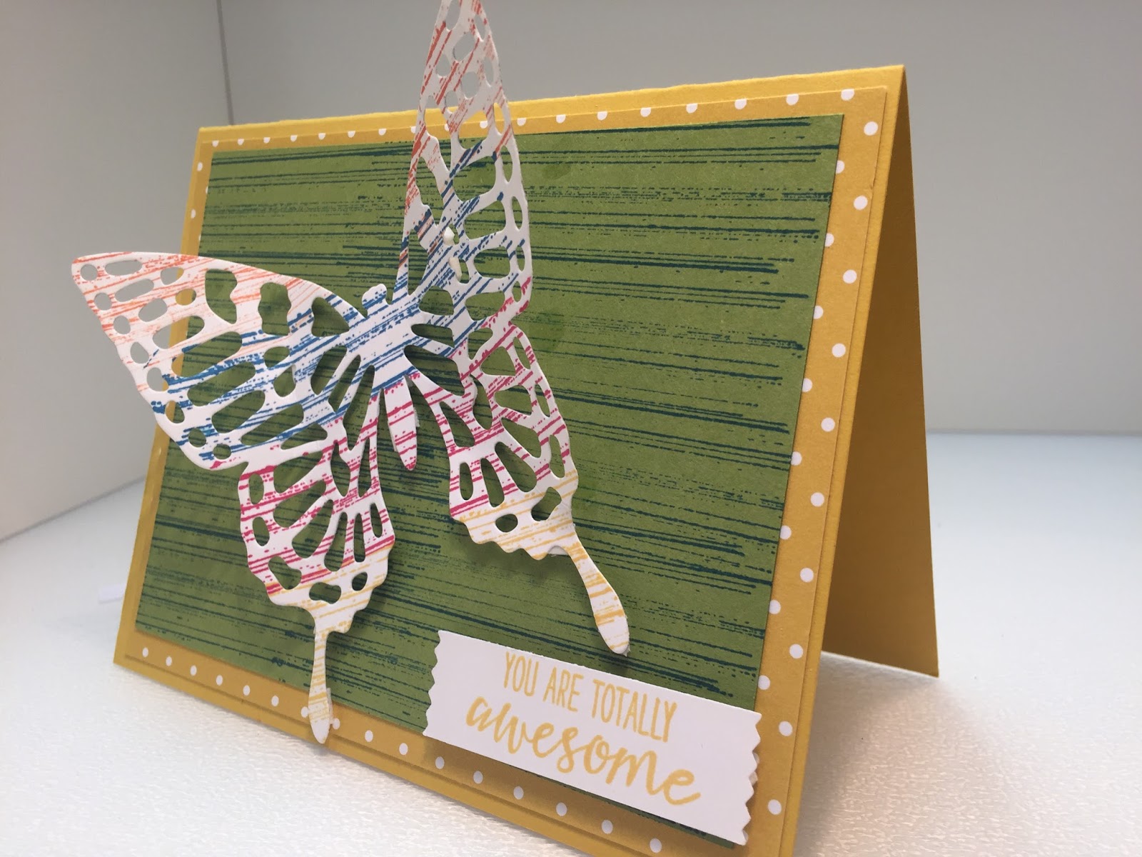 This is a super cute and easy card to make. This is a great card if you need a lot of cards and your short on time. I love how it turned out! I turned my mistake into this card! I was trying to case a card I saw on Tami White’s periscope broadcast. I accidentally used the wrong stamp and didn’t like the way the card turned out. I ended up using the butterfly and creating this beautiful card!