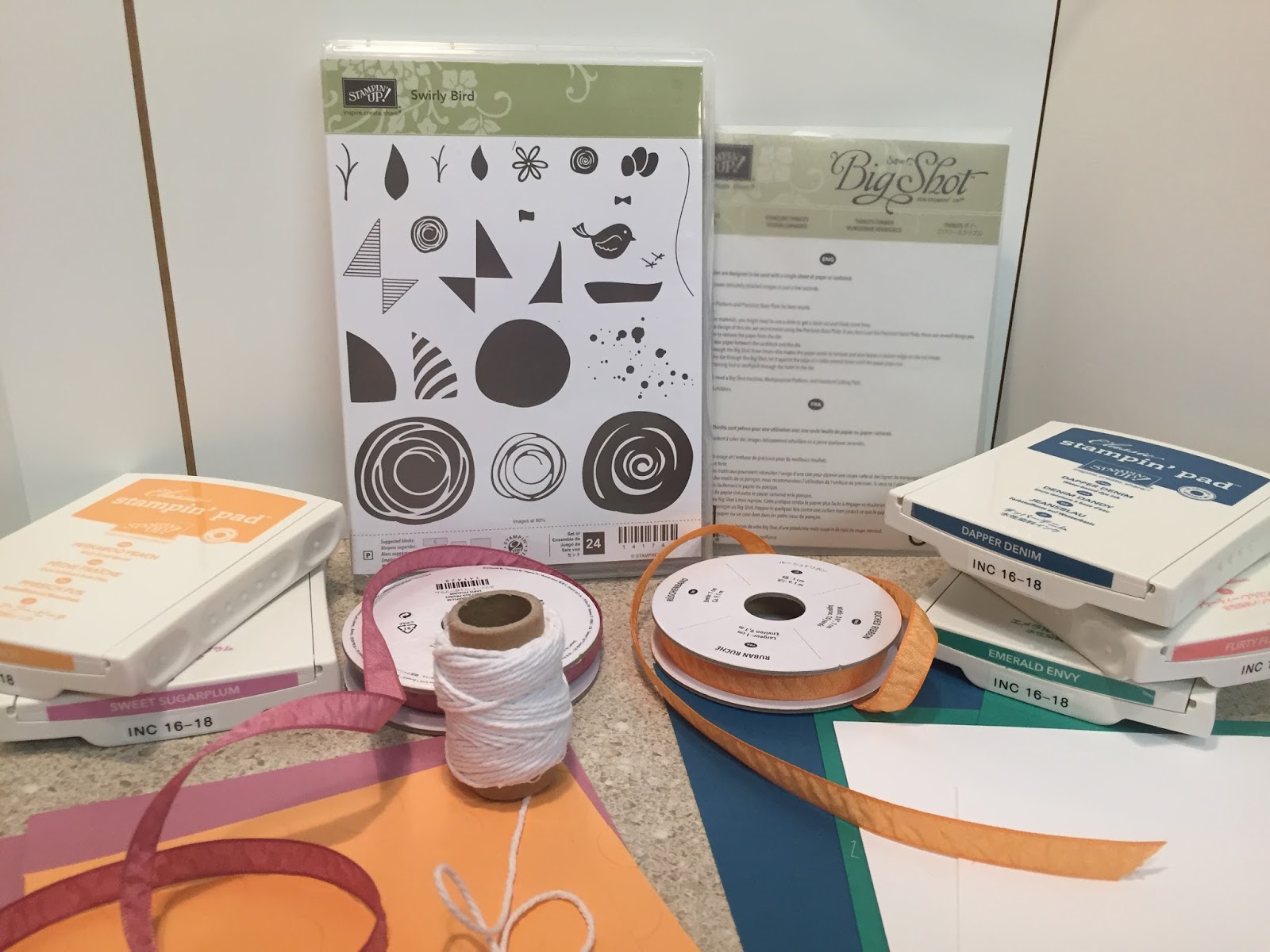 Option #1 Swirly Bird Stamp Set & Thinlets (Bundled Package) Swirly Bird stamp set & thinnest (This is the bundled option in the catalog) You will also receive ALL 5 In Color ink pads! 1. Peekaboo Peach 2. Dapper Denim 3. Sweet Sugarplum 4. Emerald Envy 5. Flirty Flamingo As always I will provide all the cardstock and all the ribbon and thick white bakers twine. This helps keep the cost as low as possible. If you want to build your stamp set & inks this is the best deal. Click Here To Order Option One Option #2 Swirly Bird Stamp Set & Ink Pads Swirly Bird Stamp Set Only 5 In Color Ink Pads 1. Peekaboo Peach 2. Dapper Denim 3. Sweet Sugar Plum 4. Emerald Envy 5. Flirty Flamingo As always I will provide all the cardstock and all the ribbon and thick white bakers twine. This helps keep the cost as low as possible. If you only want the stamp set and want me to provide the cutouts this is the deal for you. Click Here To Order Option Two Option #3 Swirly Bird Stamp Set & Thinlets with Mini Ink Pads Swirly Bird Stamp Set Thinlets Bundled Package 5 In Color Mini Ink Pads (similar to what comes in the paper pumpkin kits) 1. Peekaboo Peach 2. Dapper Denim 3. Sweet Sugar Plum 4. Emerald Envy 5. Flirty Flamingo As always I will provide all the cardstock and all the ribbon and thick white bakers twine. This helps keep the cost as low as possible. If you want the stamp sets and the thinlets and can wait to purchase the In Color ink pads then this is the deal for you. Click Here To Order Option Three