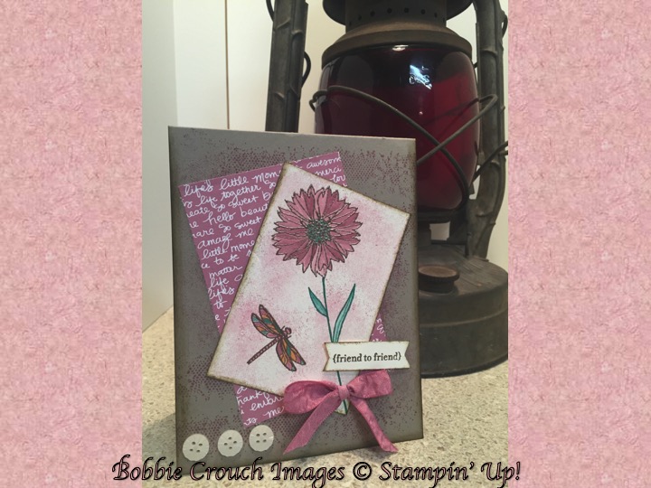 I used the Touches of Texture stamp set. This stamp set is just so versatile and can be used in so many different ways. I also used the new copper embossing powder. I recently purchased Stampin’ Up’s blender pens and I have been using them on so many projects.