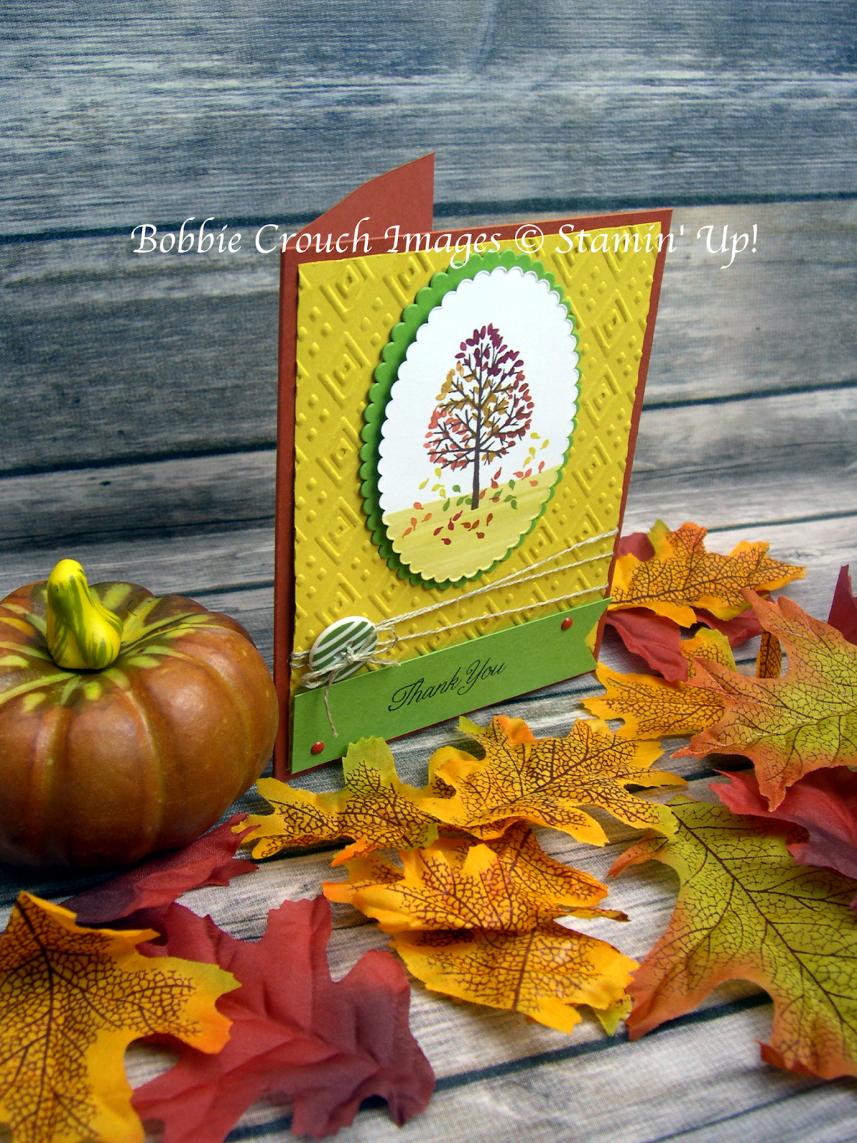 I was inspired by a card in the holiday catalog on page 48. I changed it up a little to make it my own and to put my own twist on it. It uses a lot of different inks but that is okay with me. Fall has so many different colors when the leaves start to change. I wanted to make sure and capture as many as I could!