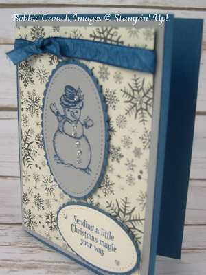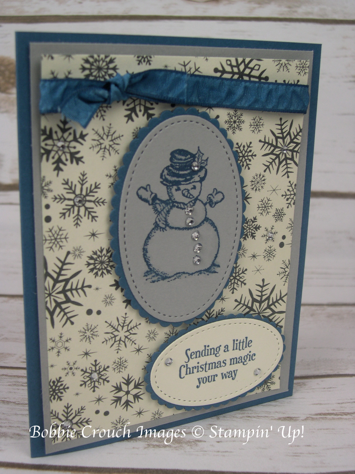 I have a beautiful card for you today. I love snowmen, and this is just the cutest snowman ever! I dressed him/her up a bit with the jewel rhinestones to add some bling. I also used the Wink of Stella pen.