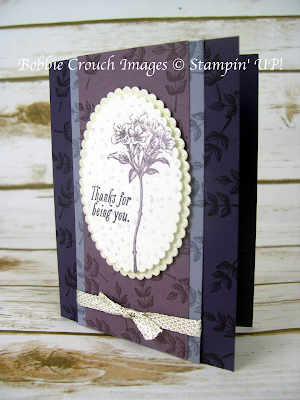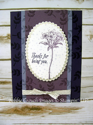 I have a beautiful card for you today. The best part is the stamp set is FREE!!!! You can earn this stamp set in the Sale A Bration catalog starting on January 4, 2017. For every $50.00 you spend in the Occasions or Annual catalog you earn a free item from the Sale A Bration catalog. You can also earn the ribbon I used on the card FREE! Both items are in the Sale A Bration catalog.