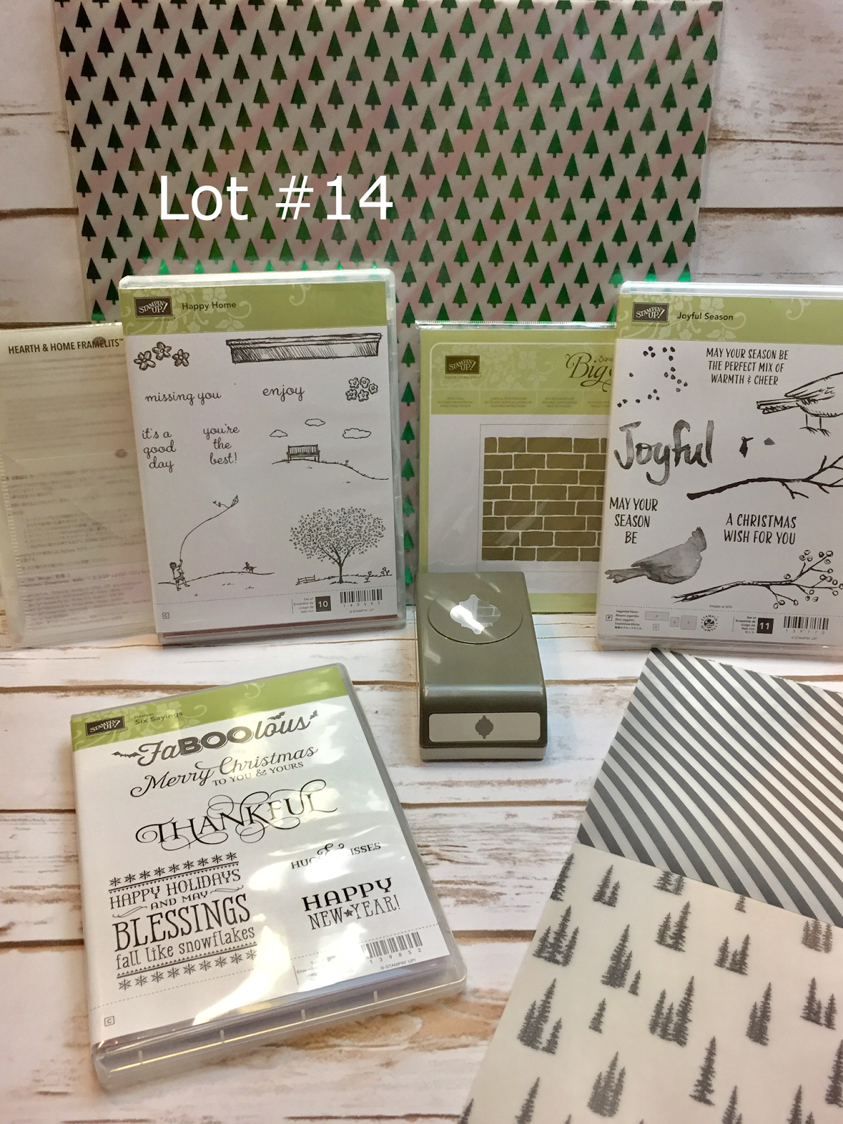 Lot #14 Holidays Fancy Foil 12×12 Designer Velum Paper -New Winter Wonderland 6×6 Designer Velum Stack-New Happy Home Stamp Set-Clear Mount-Used Hearth & Home Framelits Joyful Season Stamp Set-Photopolymer-Used Six Sayings Hostess Stamp Set-Used-Clear Mount Ornament Punch (not sure if that is the name) Brick Wall Embossing Folder